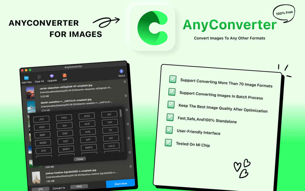 AnyConverter is a desktop-based image conversion software that ensures your privacy and data security. Whether you are a designer, photographer, editor or developer, it will help free your hands and increase your productivity by batch converting images on your Mac. Go ahead and buy it to enjoy the best image conversion service!